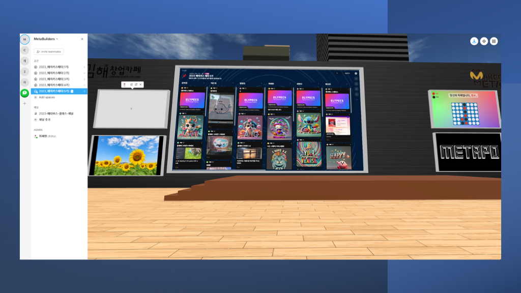 게더타운과 ZEP, 이프랜드와 제페토에서 아바타를 만들고, 가상의 교실과 전시관을 구축했습니다. - 2023년