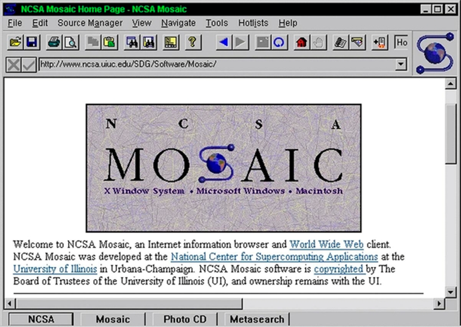 1993년에 나온 모자이크는 그저 새로운 버전의 웹브라우저가 아니었습니다. 그전까지는 텔넷(네트워크 프로토콜), FTP, 이메일 등의 인터넷 서비스를 해당 프로그램에서만 사용할 수 있었습니다. 동작 원리와 실제 사용되는 프로토콜도 달랐는데, 이런 것들을 한 공간인 웹브라우저 안에서 가능케 했다는 것은 정보통신 생태계에서는 ‘혁명’으로 불리기에 충분했습니다.